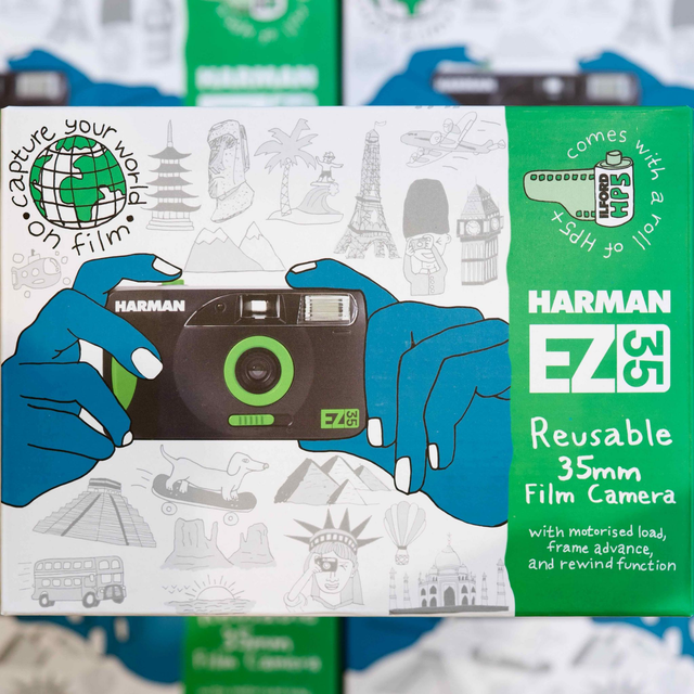 Die HARMAN EZ-35 ist die perfekte Einwegkamera alternative mit motorisierter Lade-, Bildvorschub- und Rückspulfunktion. Damit ist sie die ideale Kamera für alle, die in die Filmfotografie einsteigen oder eine einfache Point-and-Shoot-Option suchen, um ihre Momente festzuhalten.